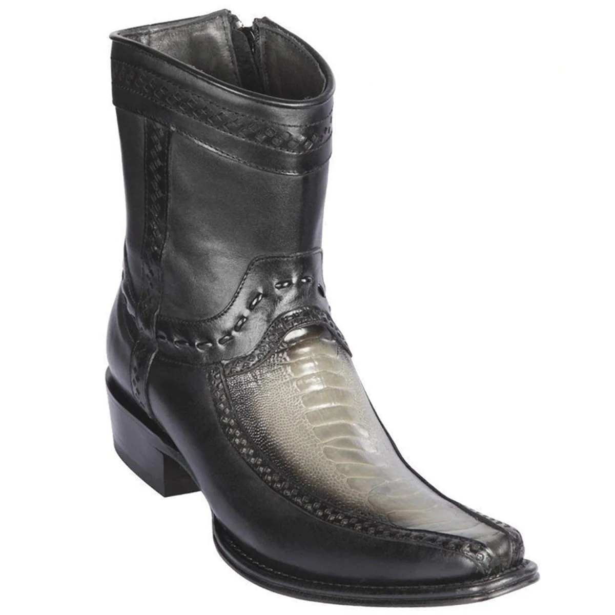 Botas Cortas de Pata de Avestruz Original Punta Europea Color Gris Difuminado – Los Altos Boots