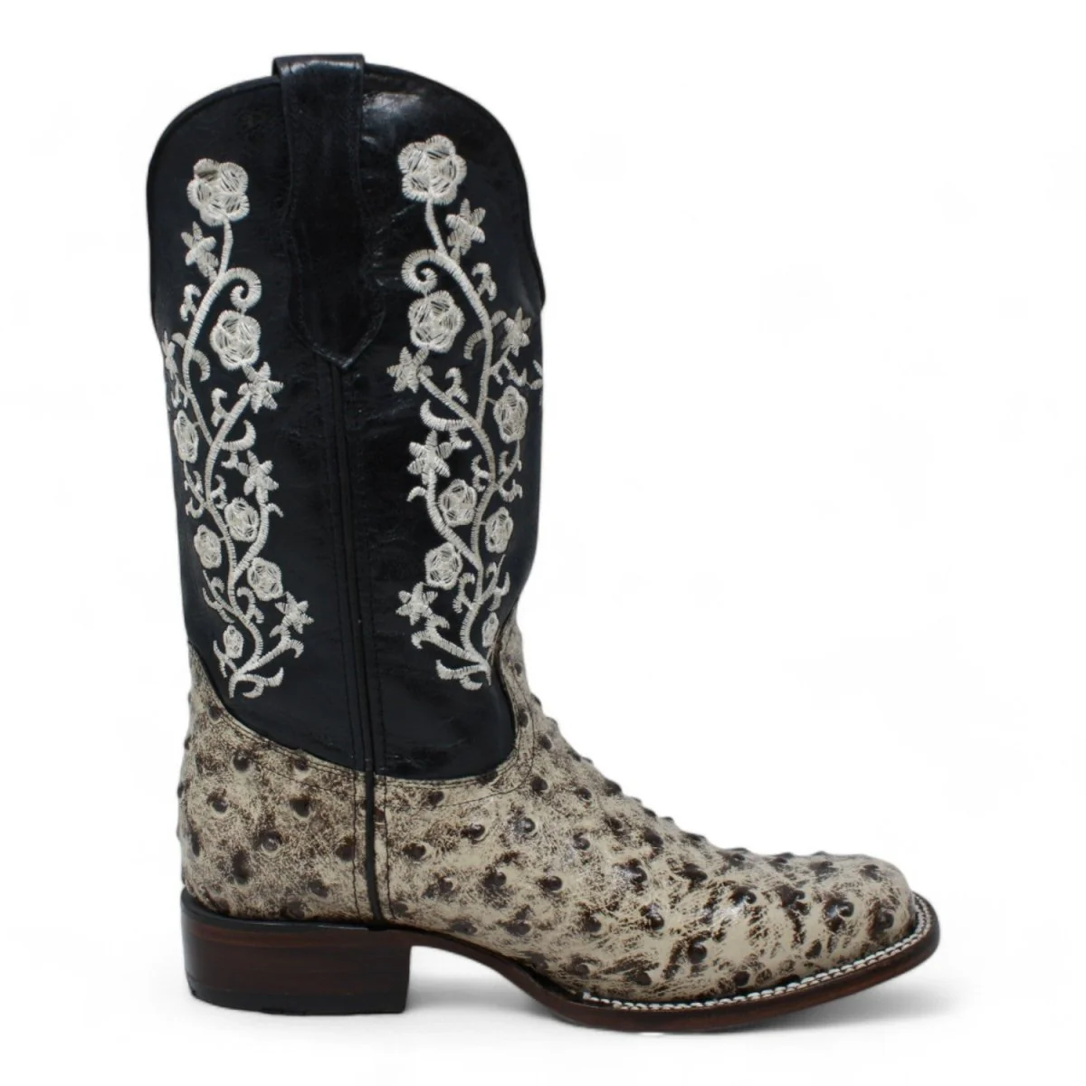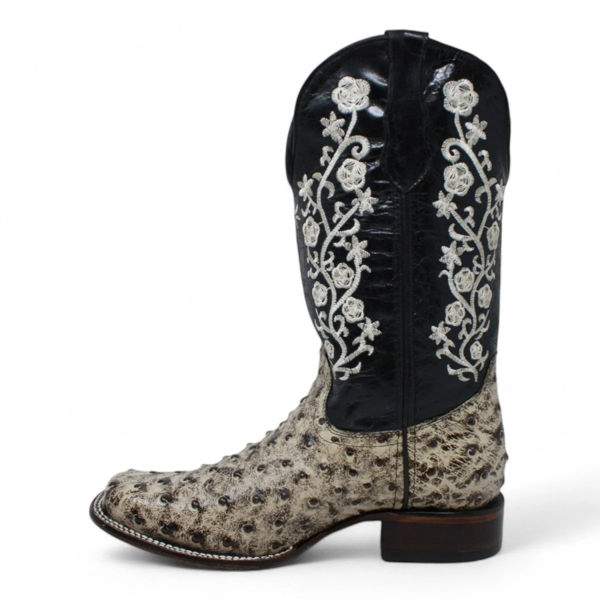 Botas de Avestruz Grabado Horma Rodeo para Mujer Color Blanco WD-502