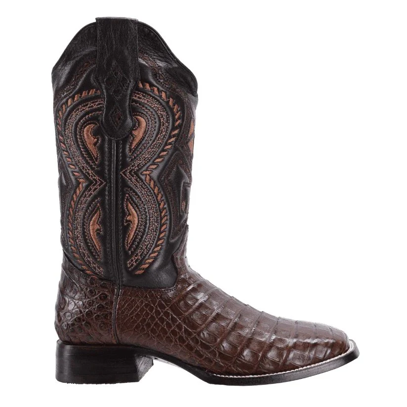 Botas de Cocodrilo Panza Original Horma Rodeo Cuadrada Color Cafe JB-506CAFE