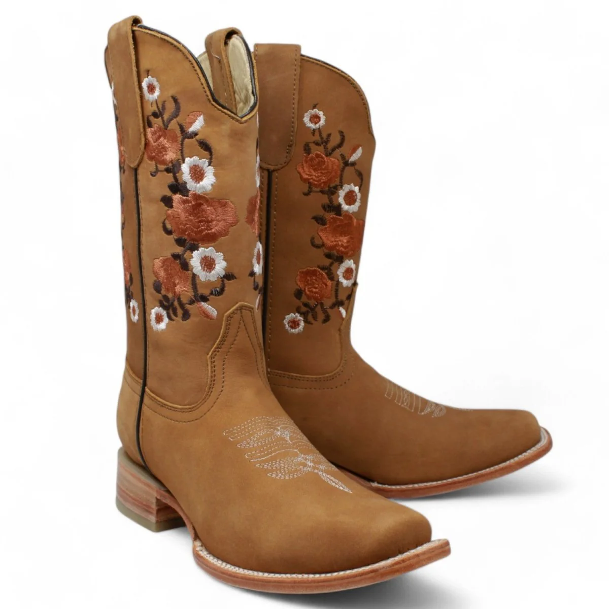 Botas de Gamuza Vaqueras para Dama con Diseño Bordado Floreado