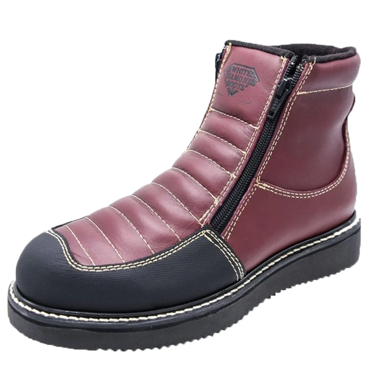 Botas de Trabajo Cuero Original con Doble Zipper Color Vino WD-446