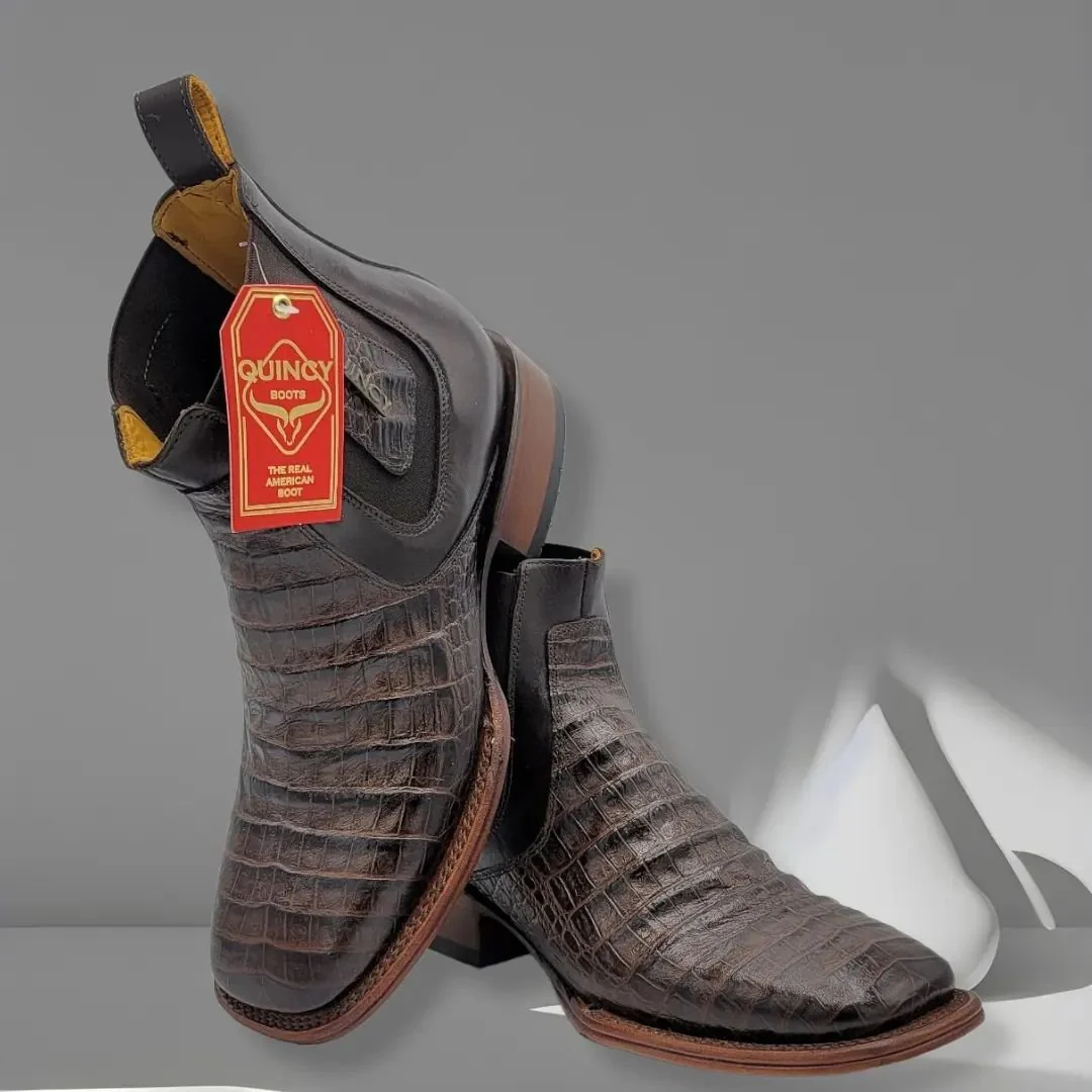 Botines de Cocodrilo Grabado Nuca con Punta Cuadrada Color Chocolate Q82B8294
