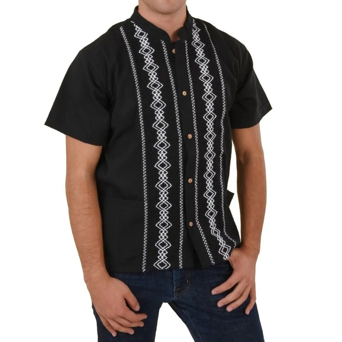 Camisa Tradicional de México con encaje bordado en la parte delantera