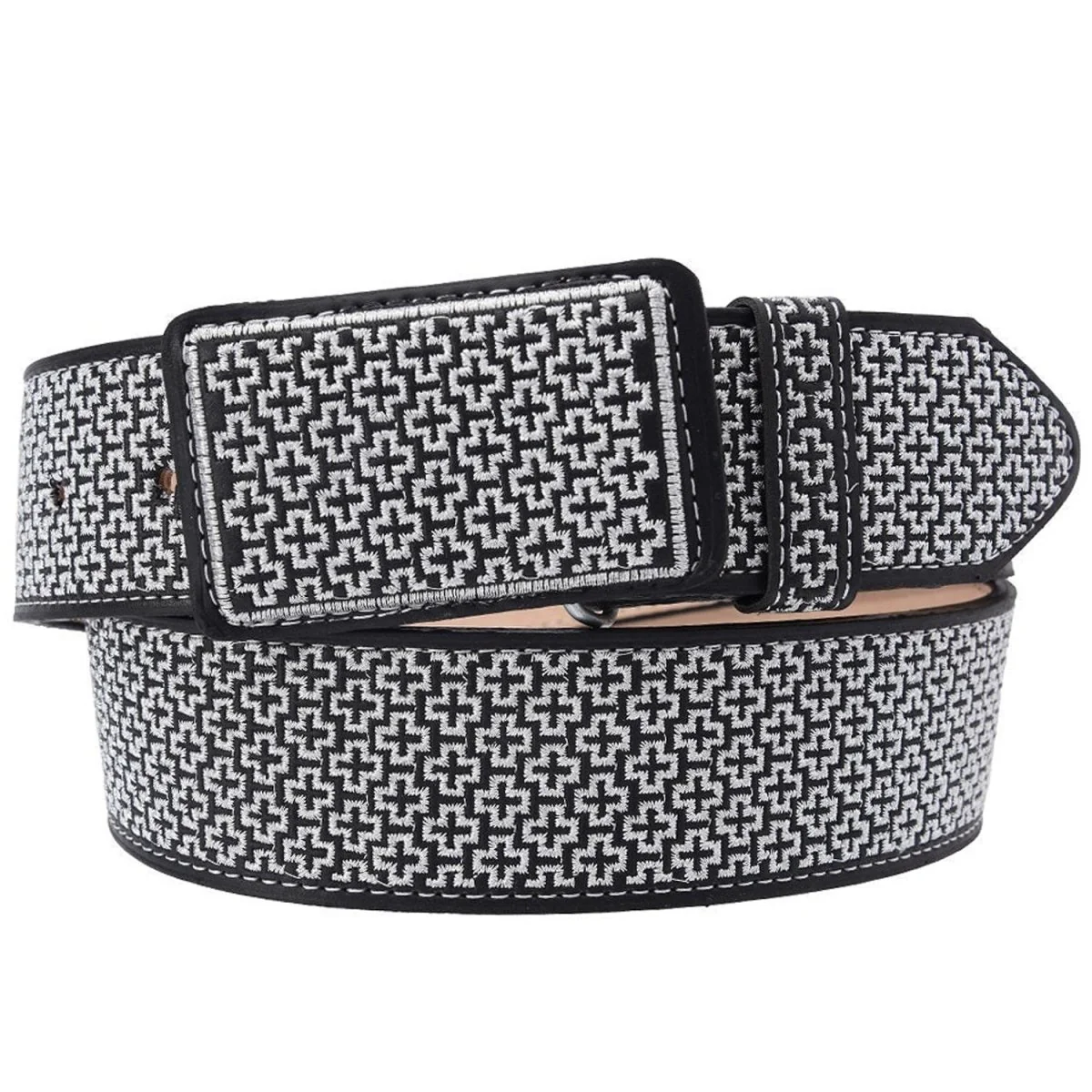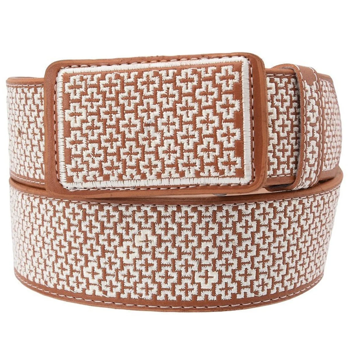 Cinto para Hombre de Piel Vacuna Bordado con Hilo Metalico