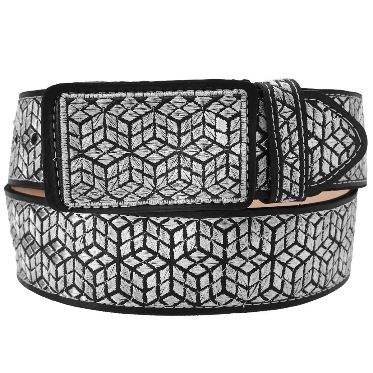 Cinto para Hombre de Piel Vacuna Bordado con Hilo Metalico