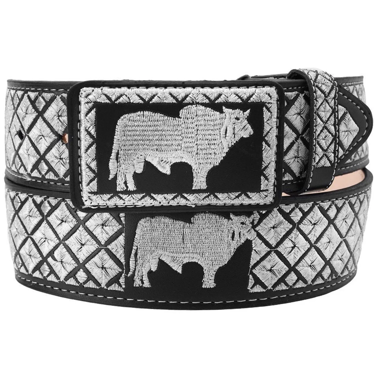 Cinto para Hombre de Piel Vacuna Bordaddo con Hilo Metalico