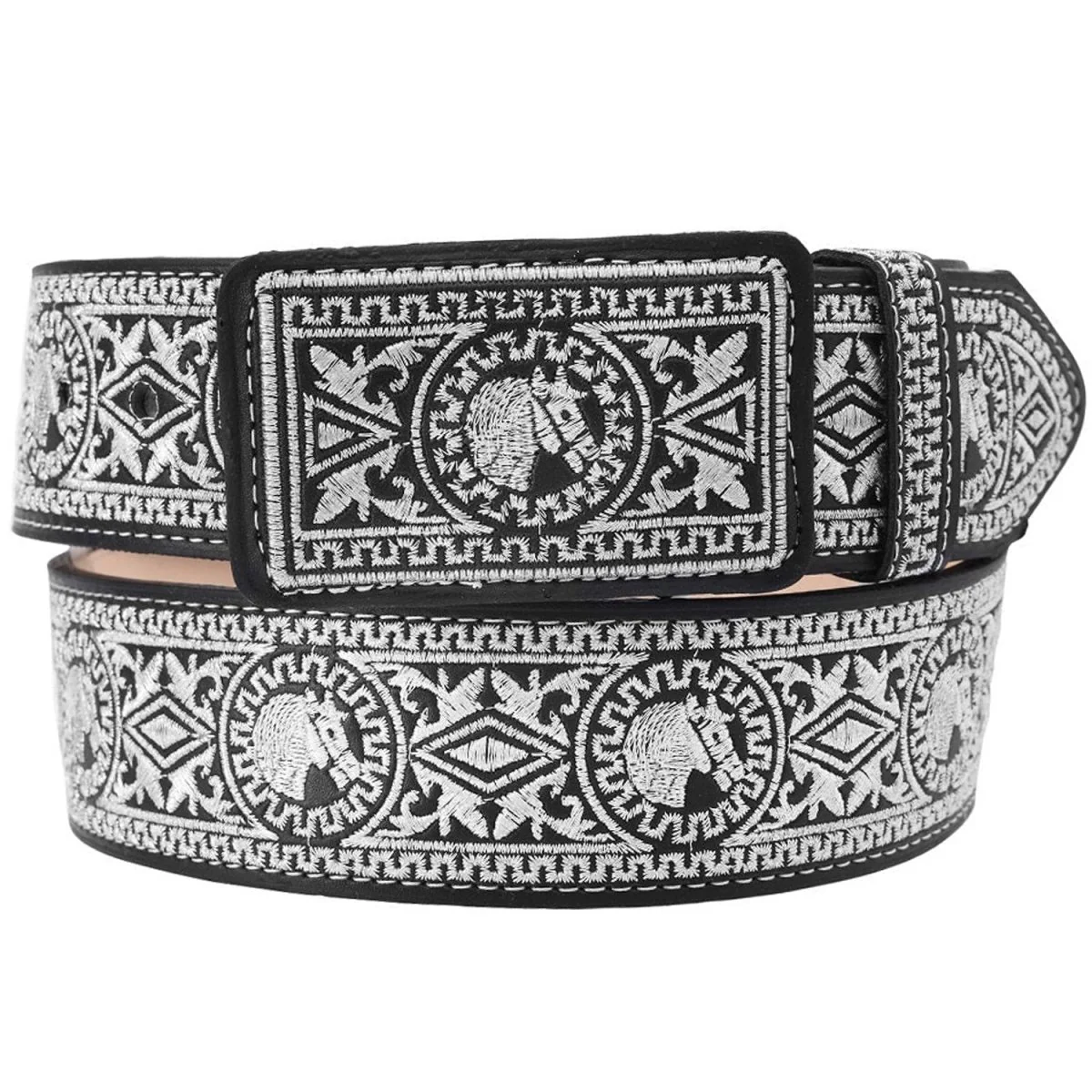 Cinto para Hombre de Piel Vacuna Bordado con Hilo Metalico