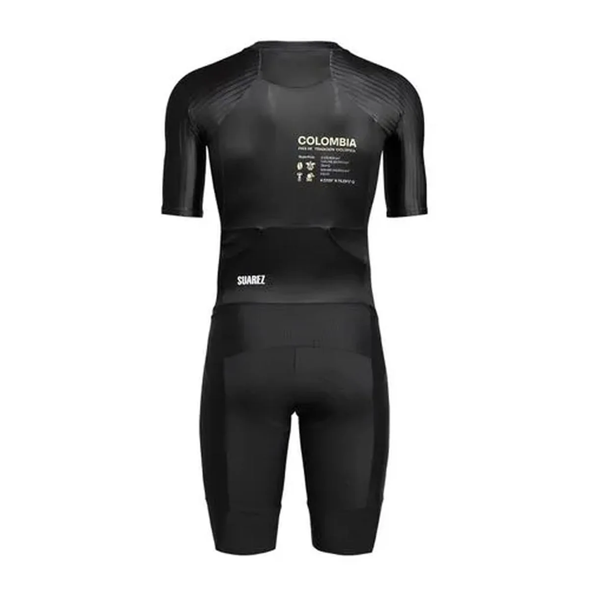 Enterizo Triatlon Sublimado Suarez Hombre Negro MountainsMuchos Corredores De Equipos Pro-Tour Cambiaron La Indumentaria Tradicional Por Enterizos Para Competir En Las Grandes Carreras, Por Ser Prendas De Una Pieza Única, Livianas Y Con Alta Carga Técnica Que Se Adaptan Al Cuerpo Del Atleta.Fabricado Con Filamentos Más Delgados Y Finos Que Los Convencionales. De Peso Liviano, Menor A La Suma De Un Jersey Y Una Pantaloneta, Haciendo Más Placenteras Y Rápidas Las Subidas A Los Puertos De Montaña. Con Tres Bolsillos Y Cremallera De Sistema Separable Para Que A La Hora De Ponérselo Sea Mucho Más Fácil. Por Estar Completamente Adherido Al Cuerpo Aumenta El Coeficiente De Resistencia Aerodinámico. Construcción Con Costuras Reducidas, Corte Limpio Y Sin Dobladillos En Las Mangas Y Bolsillos Con Termosellado En Lugar De Costura. Cuenta Con Nuestra Badana Con Carbón Bacteriostático.