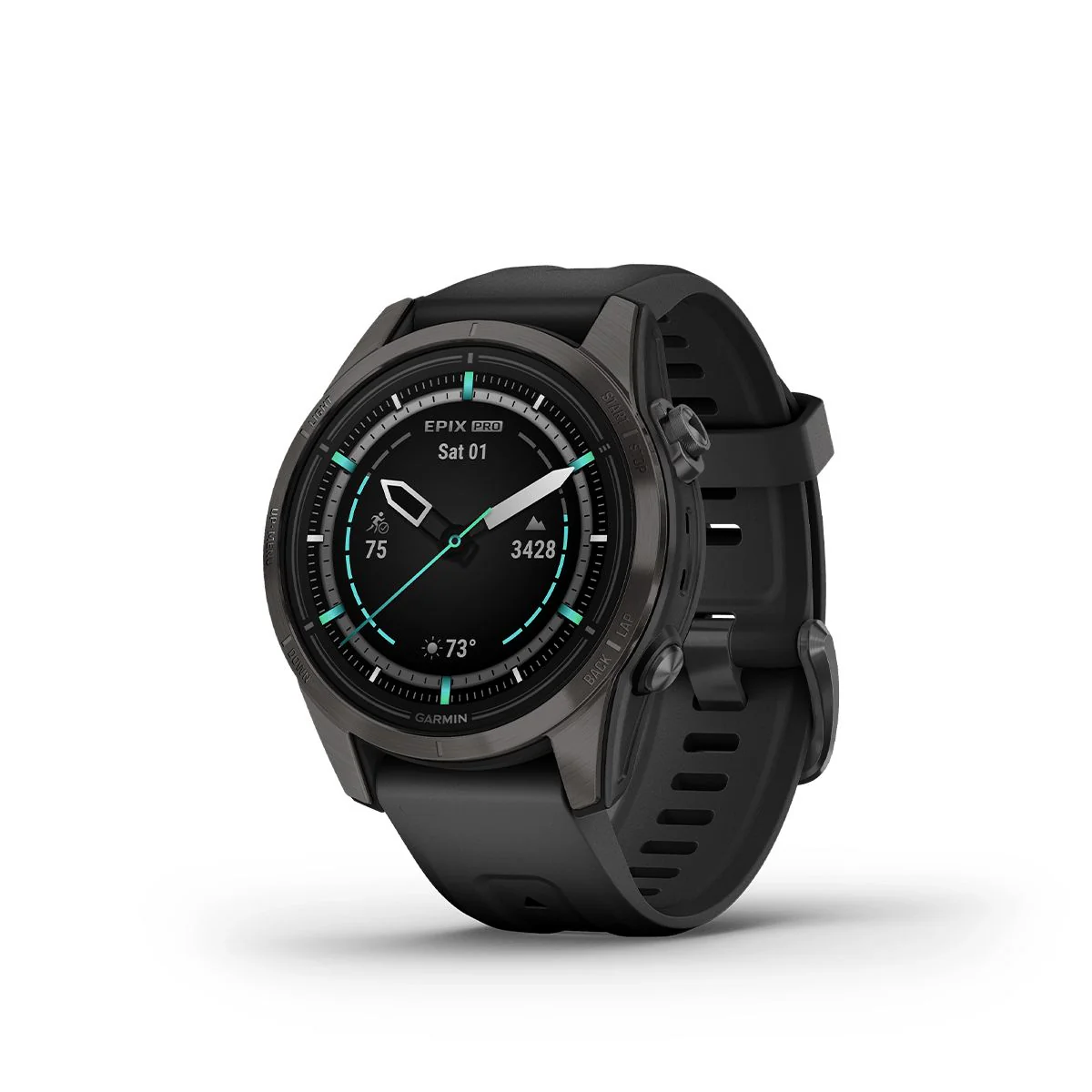 El resistente diseño deportivo cuenta con una brillante pantalla amoled de 1.2″, pantalla amoled de zafiro resistente a los arañazos, una pantalla táctil con gran capacidad de respuesta, botones tradicionales y una carcasa de polímero reforzado con fibra de 42mm con bisel y cubierta trasera de titanio. El reloj cumple con el estándar militar estadounidense de rendimiento térmico, resistencia a los golpes y resistencia al agua.
