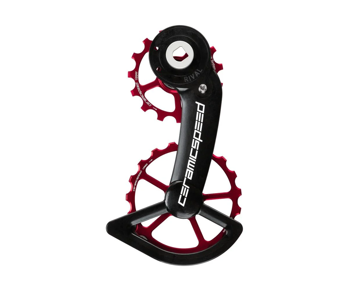 El sistema de rueda de polea sobredimensionada para SRAM Rival AXS cuenta con un ajuste de rueda de polea superior de 15 dientes y inferior de 19 dientes, para una máxima eficiencia. El sistema OSPW hecho a mano tiene dos configuraciones de tensión de resorte, lo que permite una configuración personalizada en función de las condiciones de conducción.